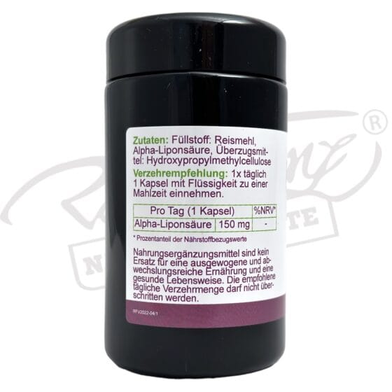 Inhaltsstoffe: 1 Kapsel enthält 150mg Alpha-Liponsäure.(= 0% NRV*). * Prozentanteil der Nährstoffbezugswerte