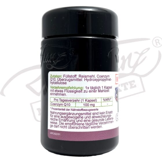 Inhaltsstoffe: Pro Kapsel befinden sich 100mg Coenzym Q10 (= 0% NRV*).