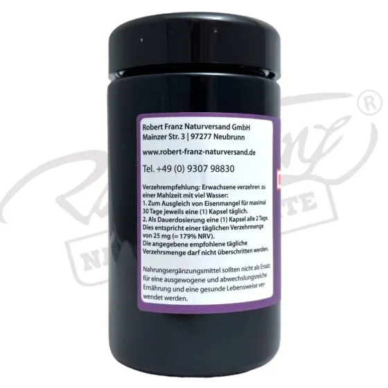 Inhaltsstoffe: Jede Kapsel enthält 25mg Eisen. (= 179% NRV*)