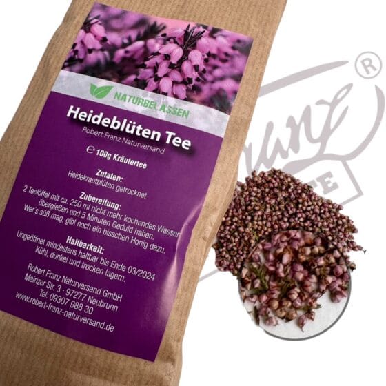 Vor allem an kalten Tagen ist ein Heideblütentee ein aromatischer Genuss und wärmt den Körper von innen. Die Ernte der Heidekrautblüten bezieht sich auf die Spitzen der Triebe, die im Anschluss luftgetrocknet und nach vollständiger Trocknung gerebelt werden. Erikablütentee wird aus der europäischen Sommerheide gewonnen und ist durch die Lufttrocknung lange Zeit haltbar und bei richtiger Aufbewahrung sehr aromatisch. Um Feuchtigkeit in den Heidekrautblüten zu vermeiden, sollten diese in einem geschlossenen Behältnis, bevorzugt dunkel und fernab der Küchendämpfe aufbewahrt werden.