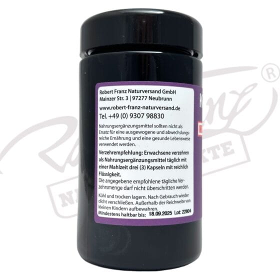 Wichtiger Hinweis: Nahrungsergänzungsmittel sind kein Ersatz für eine ausgewogene und abwechslungsreiche Ernährung und einer gesunden Lebensweise. Die angegebene empfohlene tägliche Verzehrmenge darf nicht überschritten werden. Außerhalb der Reichweite von Kindern aufbewahren. Trocken und kühl lagern.