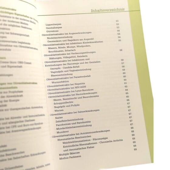 Das Buch Olivenblattextrakte erzählt über den geschichtlichen Hintergrund der Olivenblätter mit Anwendungsberichten und praktischen Verzehrempfehlungen.