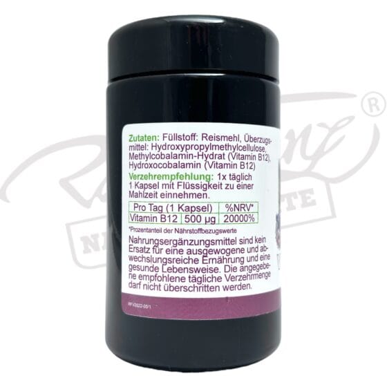 Inhaltsstoffe: Pro Kapsel befinden sich 500mcg Vitamin B12. ( = 0% NRV*)