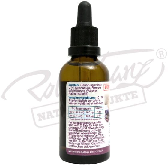 Zutaten: L-(+)-Milchsäure 20%, Natriumselenitlösung (Wasser, Natriumselenit)